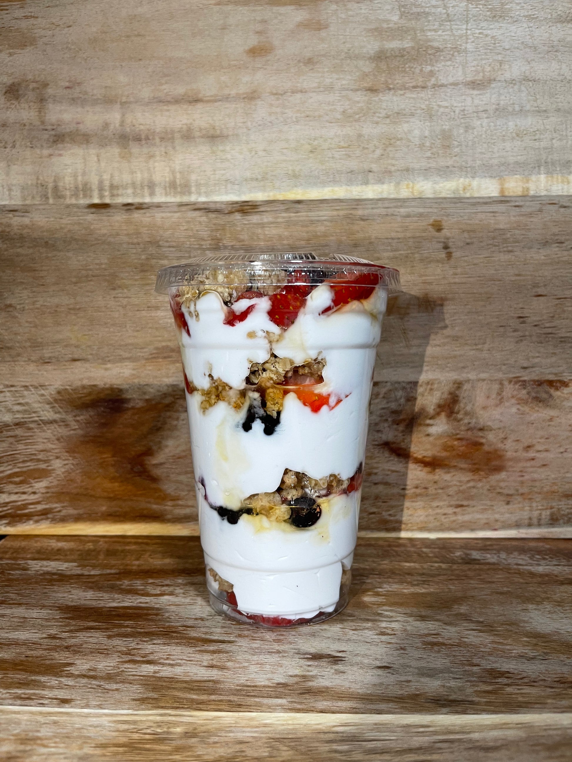 blackberries, strawberries and granola layered with cocojune organic cultured coconut yogurt and a honey drizzle throughout.